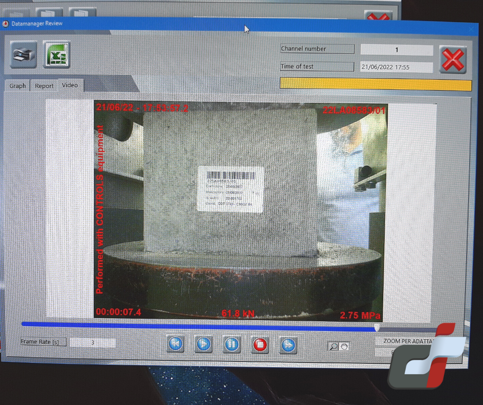 Con il nuovo sistema di I.A. installato sulle nostre presse automatiche le Stazioni Appaltanti pubbliche e private possono richiedere la registrazione video della prova di resistenza a compressione.